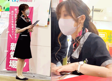 01某携帯ショップの店員さん・・パンスト越しの鮮やかパンティーと胸ちらいただきました