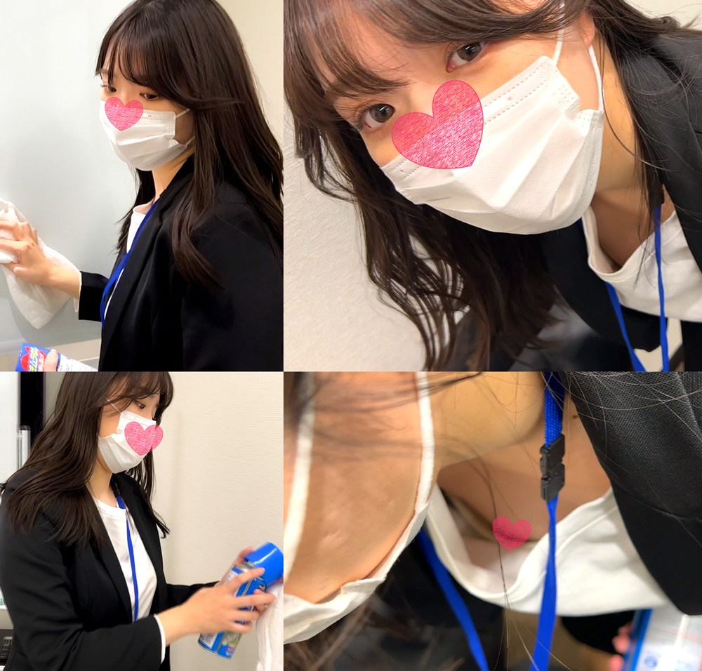 【胸ちら/乳首】会社内TOPクラスの美女!!掃除中のおっぱい絶景!!