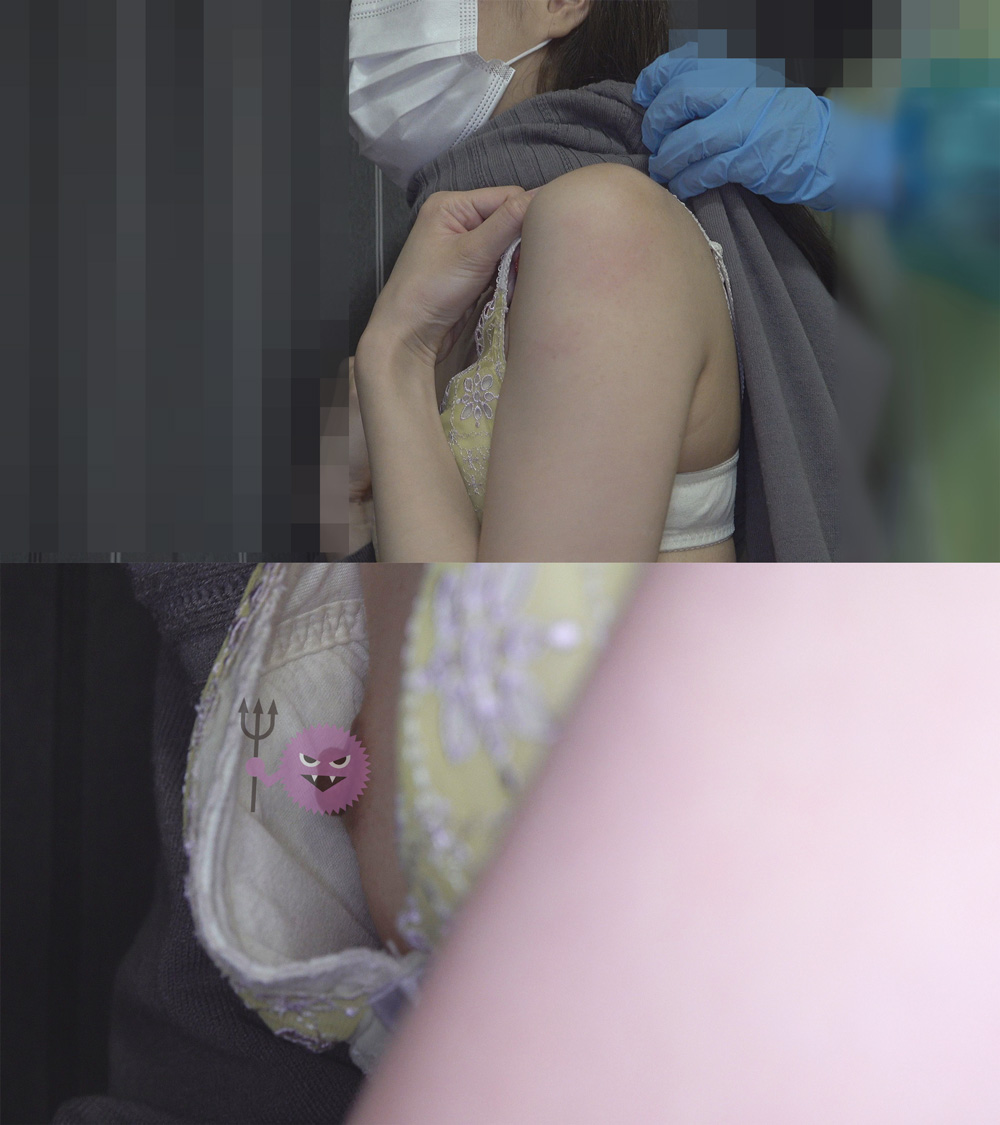[ワクチン接種]学生の子と一般外来2名、モロ見えてます[胸チラ]