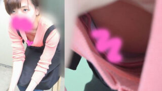 盗撮 【前屈み胸チラ③】着やせする巨乳・激カワJDちゃん→→あ、あ、呼吸に合わせてブラが、、、!