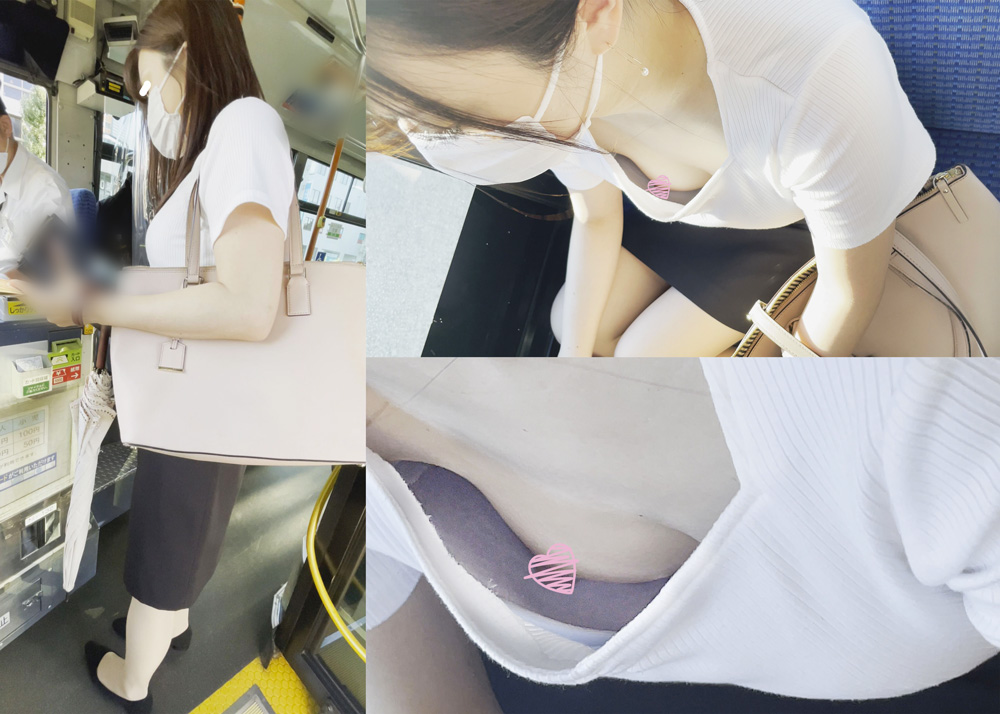 [市バス胸チラ]営業OLお姉さん、おっぱい出てますよ