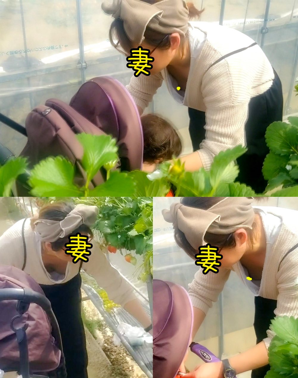 【妻の隠し撮り#28】 イチゴ狩り胸チラで乳首丸見え妻。