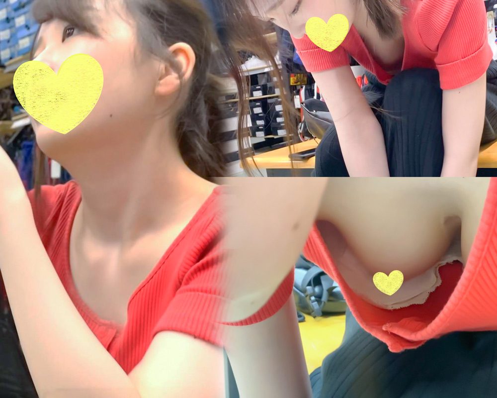 【胸ちら/乳首】2名分/ジョギングシューズ試着中の同僚・ロープレ中の同僚胸チラ【丸見え】