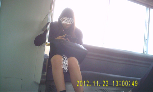 ふと電車に乗ると、今どきギャル女子大生がスマホに夢中でミニスカをパコパコ!