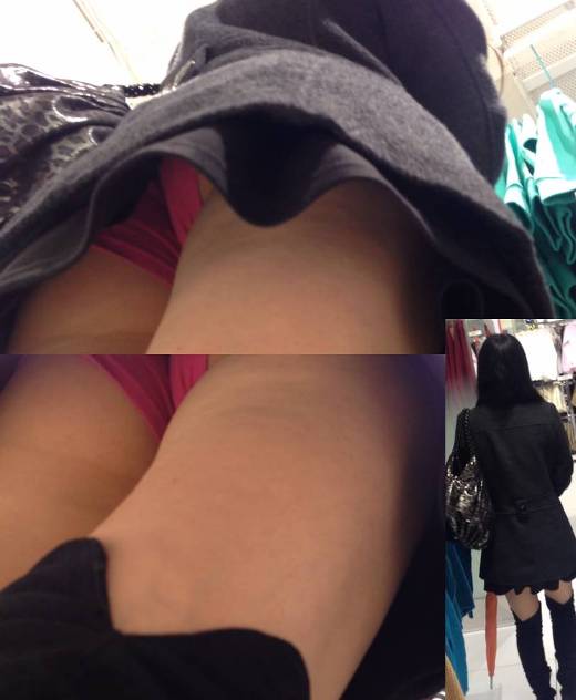 背後からスカートの中にカメラを向けてパンチラを狙います。