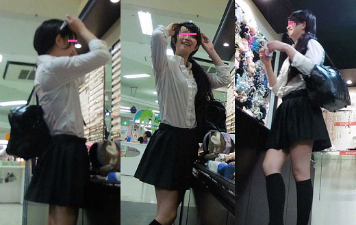 ミニすぎるかわいい制服女子が笑顔でカチューシャを選んでいます