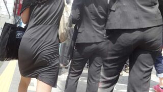 盗撮 柔らかそうなお尻を振りながら歩くOLさんはパンティーラインがクッキリと浮かぶ!