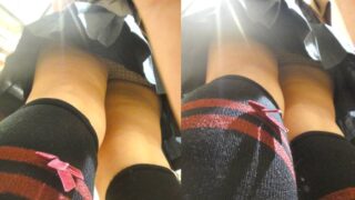 盗撮 可愛いギャルローアングルで水玉のパンティーがバッチリ!!