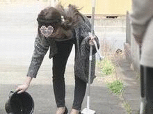 同僚OLのお掃除 Cカップ胸チラ 乳首がww